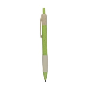 Bolígrafo con clip, barril y punta de wheat straw (fibra de trigo), grip de goma y mecanismo de click.