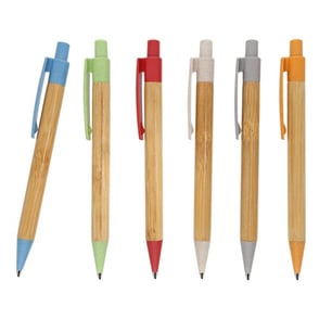 Bolígrafo de bambú con clip y punta de wheat straw (fibra de trigo) con mecanismo de click.