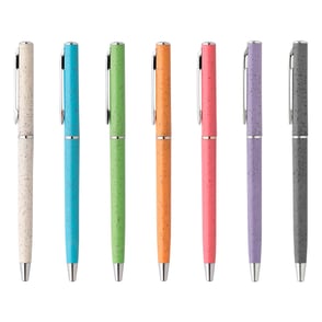 Bolígrafo con barril de fibra de trigo y plástico ABS, con mecanismo twist, detalles en plástico cromado en clip y punta.