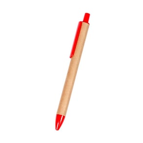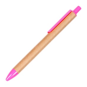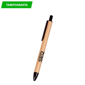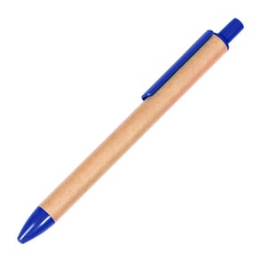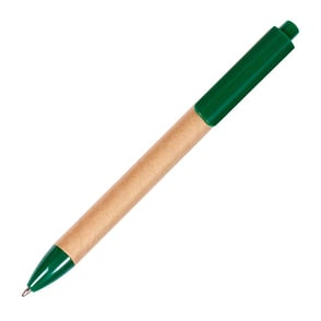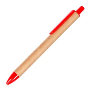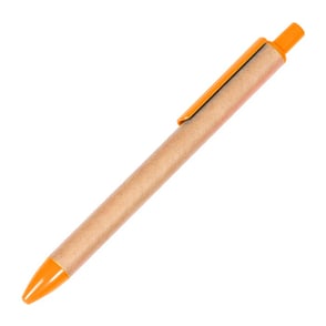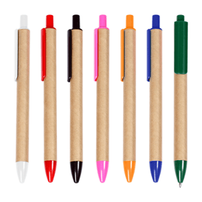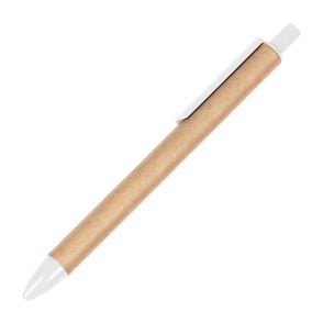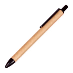 Bolígrafo ecológico, barril color cartón y accesorios de plástico con tinta negra.